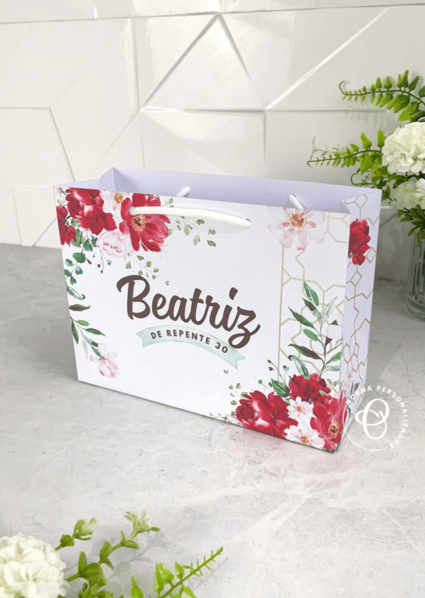 Sacola Personalizada Floral Chique Vermelho (10 unidades)