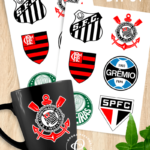 Cartela DTF UV Brasão Times Brasileiros (6 Adesivos)